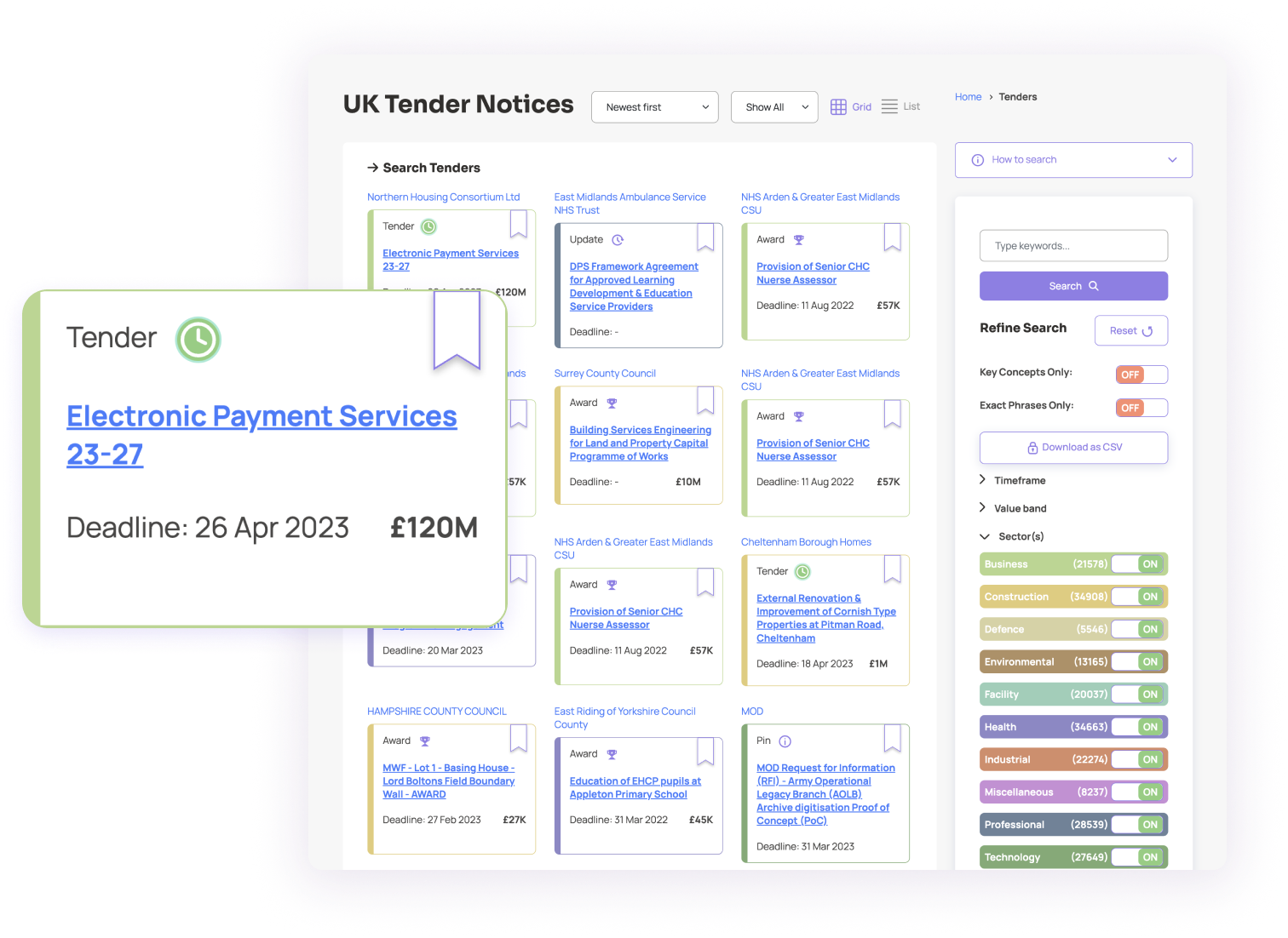 Get a comprehensive overview of your market with unrivalled access to our Buyer, Supplier and Award data.